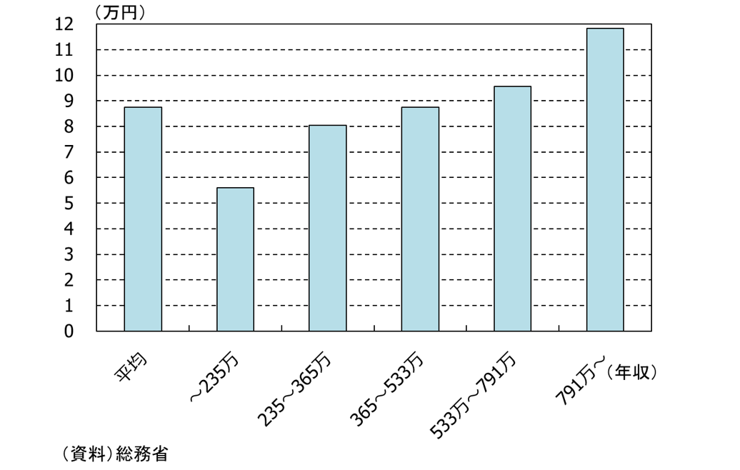図表3:世帯年収別にみた食料品消費税ゼロの一世帯当たりの年間負担軽減額