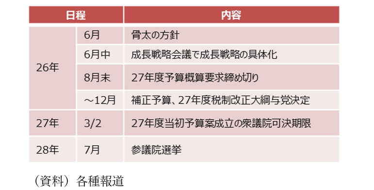 今後、食料品の消費税ゼロは国民会議で6月中を目途に中間取り纏めを行う予定であり、そのほかの成長戦略である危機管理投資等は6月に策定される骨太の方針に向け、成長戦略会議等の議論を経て政策が具体化されていくと予想されます(図表4)。食料品の消費税ゼロの財源について、高市首相は補助金と租税優遇措置の削減、税外収入を挙げていますがまだ具体化されていないほか、その他の成長戦略や防衛費もどの程度拡張されるのか、その財源はどうなるのかなど不透明な部分が多く、具体化される段階で財政懸念が台頭して円安や金利上昇が再度進む可能性もあると想定されます。