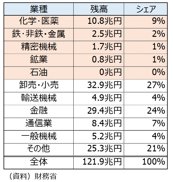 まず、5,500億ドル(約83兆ドル)の規模感について確認すると、日本企業の対米投資残高は24年末時点で合計約122兆ドルです。対米投資の対象業種である半導体、医薬品、金属、重要鉱物、造船、エネルギー、AI、量子PCなどに限ると16兆円(下表のオレンジ部分)であり、5,500億ドルの規模は非常に大きいということが分かると思います(図表3)。もっとも、期限は29年1月でトランプ大統領の任期までに案件を積み上げることになりますが、赤沢大臣によると、5,500憶ドルは上限でありこの金額をコミットしなければならないということではないということです。日本側としては、米国の顔色を窺いつつ、出来るだけ規模を抑えたいということと推察されます。