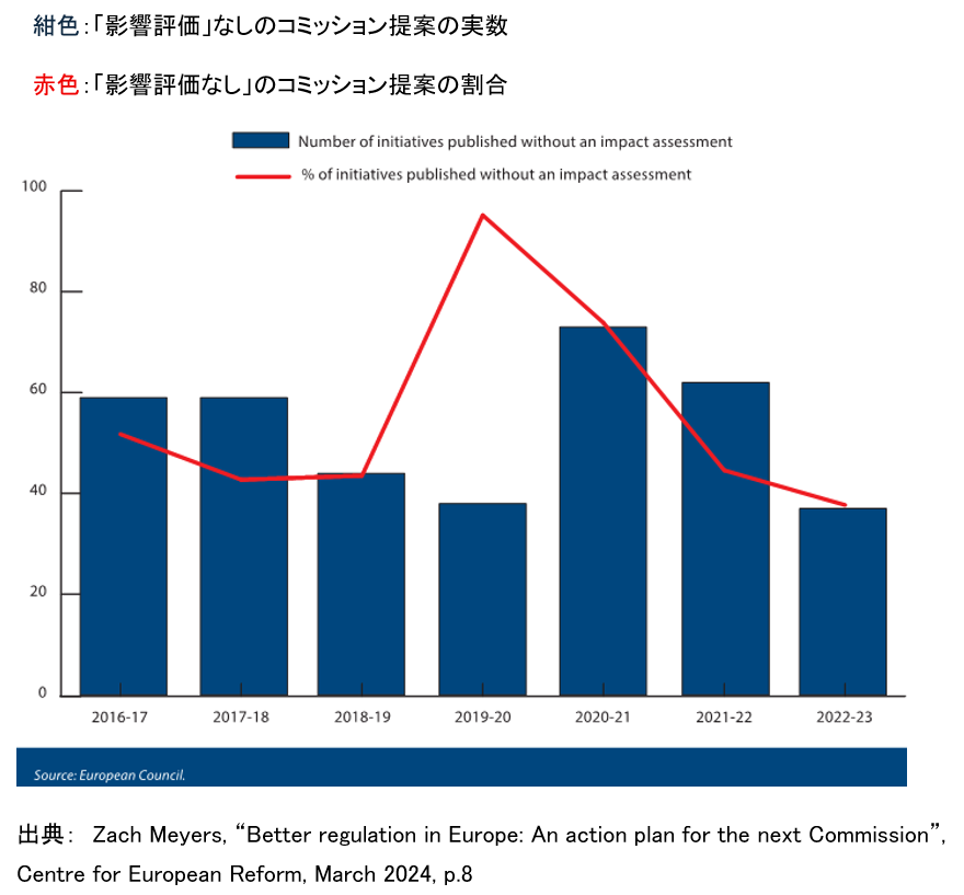 最近の傾向として、コミッションは、とくに緊急性を理由として、「影響評価」なしで立法提案を公表することが多くなっており、また、「影響評価」の質も低下していると指摘されています。
