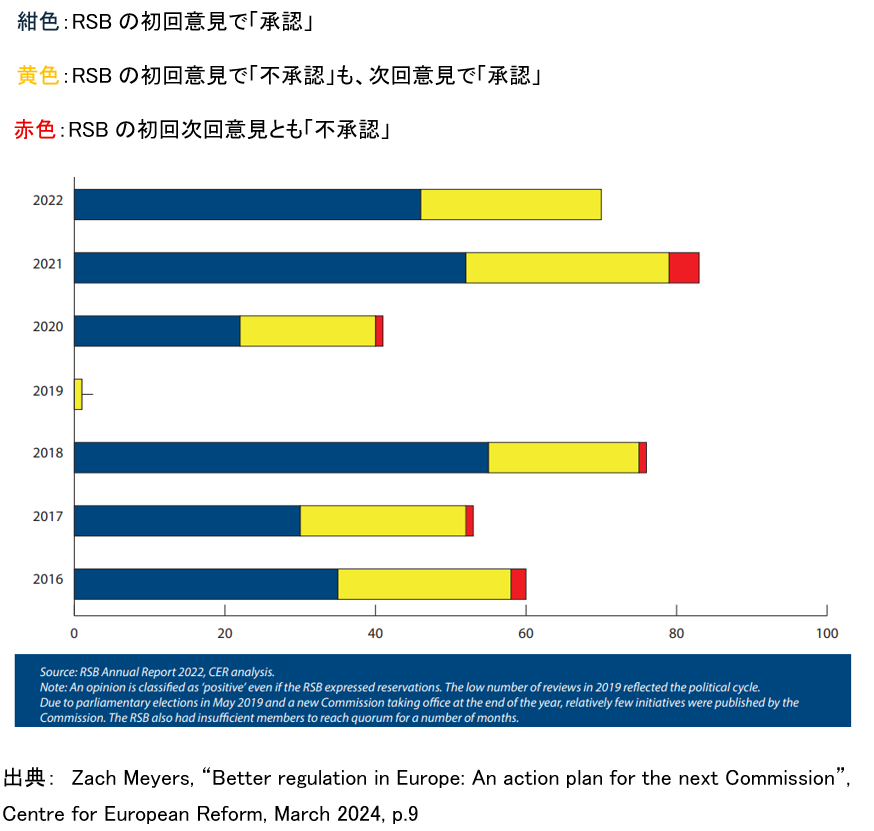 また、図表5によれば、RSBの初回意見が「不承認」(黄色および赤色で示されている)の割合が、COVID-19パンデミックの影響を受けた期間(2019年)を除き、20~30%を占めています30。たとえば、2022年報告書においてRSBは、「・・・現実味のあるオプションの幅が狭められすぎており、オプション設計が好ましいオプション寄りにバイアスがかかっており、利用可能な政治的選択肢が明確に提示されておらず、また、政策決定プロセスで浮上する可能性のある選択肢の組み合わせが十分に見込めなかった」31とコメントしています。